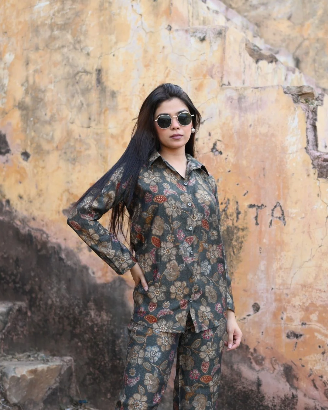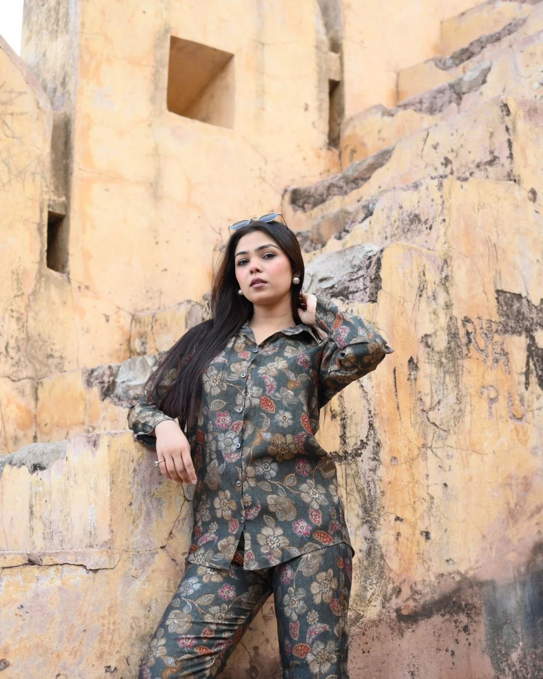 The Grey Flora Set is a graceful co-ord ensemble crafted from a premium blend of cotton and muslin, ensuring all-day comfort with a touch of sophistication. Designed with a chic grey base highlighted by elegant floral patterns, this stylish co-ord set features full sleeves for a refined finish. Perfect for office wear, day outings, or casual gatherings, it offers the ideal balance of comfort, elegance, and modern versatility for women who love effortless style.