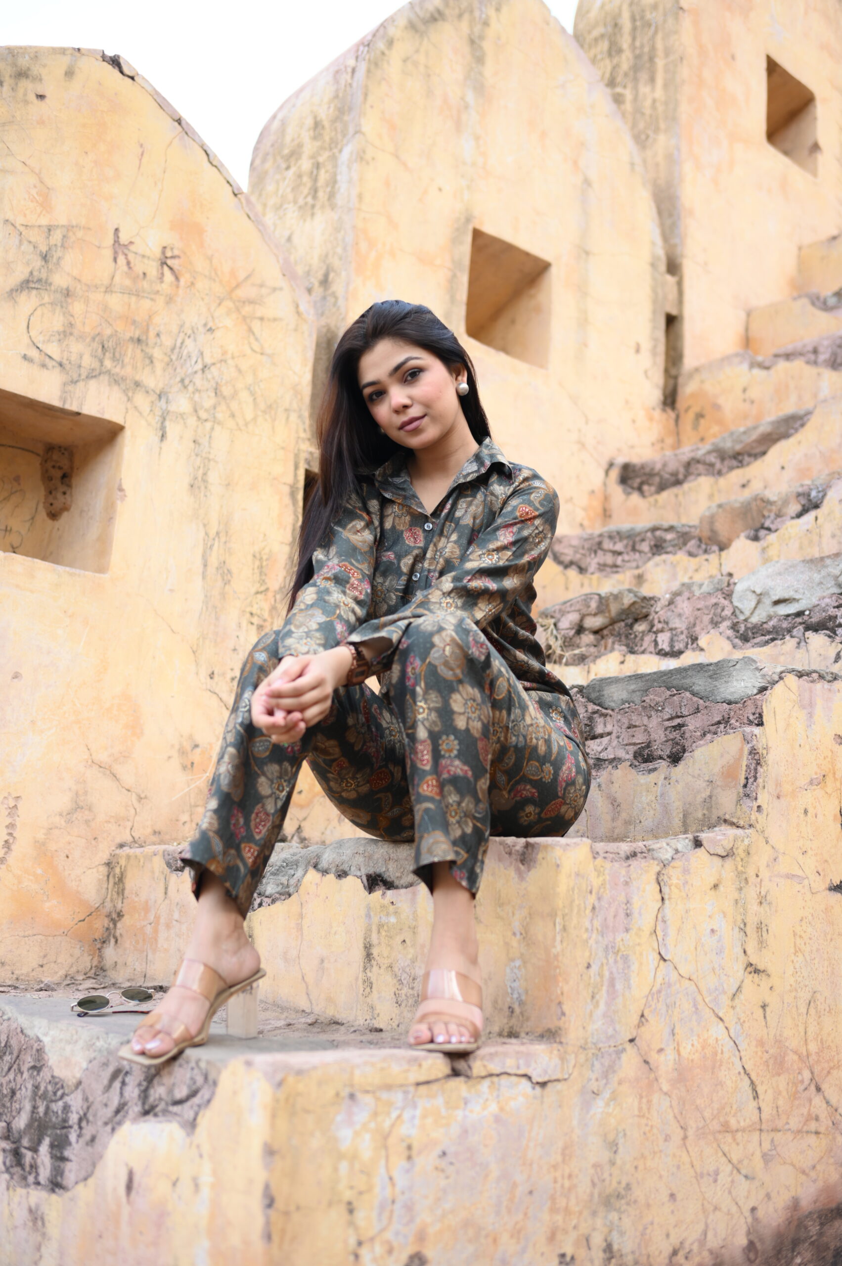 The Grey Flora Set is a refined grey floral co ord designed for women who prefer comfort with effortless elegance. This stylish co-ord ensemble blends modern design with breathable fabric, making it ideal for everyday wear. It offers a polished look while remaining easy to style for different occasions.